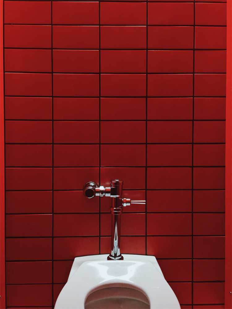 Mit einer roten Wand im Badezimmer Akzente setzen